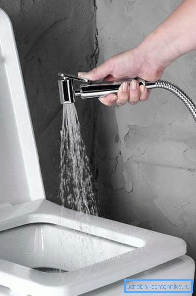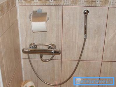 - Для установки цього варіанту близько унітазу робиться висновок, аналогічний звичайним змішувачів, головне - його зручне розташування. Не потрібно інструкція по підключенню, все максимально просто і зрозуміло, що дуже важливо для тих, хто не має досвіду проведення подібних робіт.