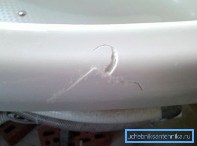 - Крихкість. Необережний удар або впав твердий предмет в резервуар з фаянсу можуть стати причиною виникнення тріщини, яка призведе до повного його руйнування.