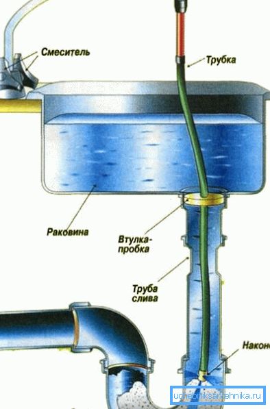 - При включенні води в близько розташованому сантехническом приладі, з слива, більш низько розташованого (зазвичай це стічний отвір ванною або душем) піднімається вода, причому вона каламутна і видає неприємний аромат.