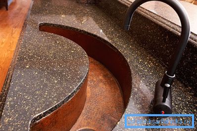 - Штучний камінь, на відміну від натурального, легко піддається обробці (шліфування, різання, свердління), тому, ви завжди зможете своїми руками просвердлити додатковий отвір для змішувача.