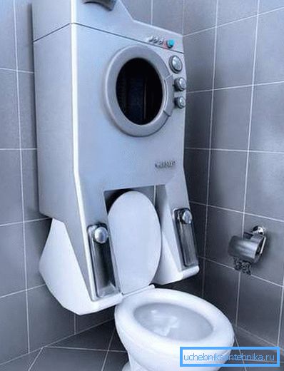 - установка пральної машини над унітазом досить незручна в умовах обмеженого простору;