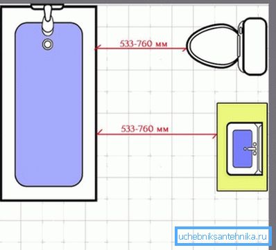 - також прийняті розміри для установки унітазу повинні враховувати розміщення решти сантехніки в убиральні, наприклад, біде, ванною і т. д.