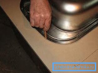 - установка врівень. При цьому способі чаша не виступає над стільницею, а складає з нею одне ціле, тобто монтується врівень. Тут інсталяція складніше і вимагає вирізати не тільки максимально рівне, але і фігурний отвір з вибором чверті (сходинкою), а для цього необхідна фрезерна машина або верстат;