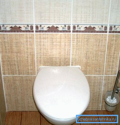 - Отвір бачка під зливну кнопку закривається спеціальною мембраною або звичайним поліетиленом, після чого інсталяція та комунікації ховаються фальшстеной. Як правило, вона збирається з вологостійкого гіпсокартону по оцинкованому профілю і викладається кахлем.