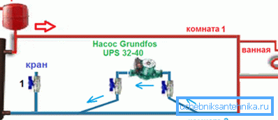 Зверніть увагу! Циркуляційний насос встановлюється саме на ділянці примикання трубопроводу з уже охолодженим теплоносієм до котла. Це пов'язано з тим, що при високій температурі насос швидко зноситься.