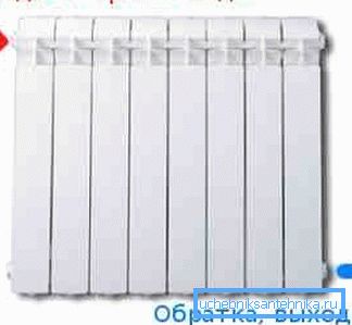 | діагональне | Дуже добре підходить для багатосекційних конструкцій. У цьому випадку вхідний патрубок під'єднують до верхньої частини одного боку, а виводять з нижньої частини іншої. Це дозволяє максимально охопити велику площу радіатора. |