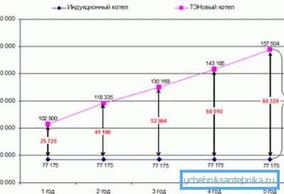 Як правило, ціна індукційних котлів заводського виготовлення в середньому помітно вище, ніж у ТЕНових аналогів, і починається від 20-25 тисяч рублів при 4-кіловатної потужності пристрою.