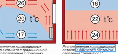 Звична нам з дитинства схема обігріву приміщення точковими джерелами тепла з порівняно високою температурою (радіаторами, конвекторами, регістрами і т.д.) називається конвекционной. Кожен опалювальний прилад генерує конвекційний потік; ці потоки перемішують повітря в приміщенні.
