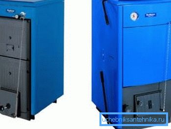 Примітка. Важіль струшування, який є майже у всіх моделей, дозволяє обійтися без відкривання топки з метою відділення золи або шлаку від палаючого палива. Майже у всіх котлів такого типу на передній знаходиться термоманометр. Завантаження палива може здійснюватися зверху, збоку або автоматично, через завантажувальний контейнер, яким забезпечені деякі котли.