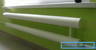 | трубчастий регістр | Невисока вартість, досить висока ефективність і надійність, великий обсяг теплоносія, значна теплова інерція. Добре підходить для обігріву великих приміщень, концертних залів, цехів і торгових комплексів. Приватний приклад - рушникосушки в ванних. |
