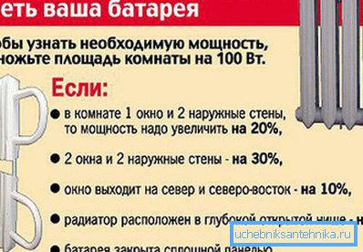 Зверніть увагу! Розрахунок необхідної потужності опалювального приладу з точністю до вата не потрібен. Нам потрібно тільки орієнтовне значення з тим, щоб визначити число секцій батареї.