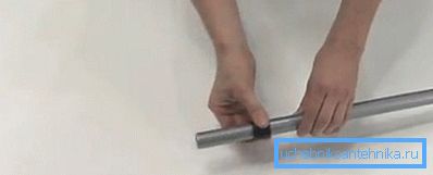 - Надягаємо на трубу насувну гільзу так, щоб фаска була направлена до приєднуваному фітинги;