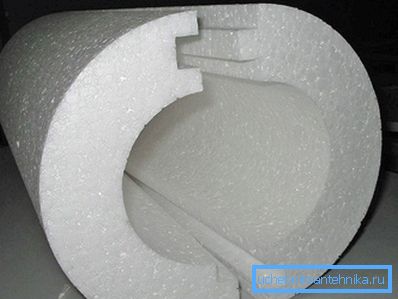 - Пінопласт. Один з найбільш часто використовуються матеріалів. Випускається також у вигляді циліндра для труб. Для утеплення додаткових частин трубопроводу, стиків і кутів виробляють спеціальні кутові елементи з пінопласту. Може використовуватися для теплоізоляції як поза приміщенням, так і всередині нього.