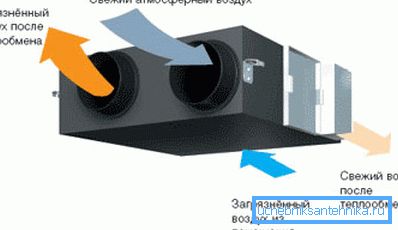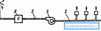 У приміщення повітря транспортується воздуховодом, позначених на схемі цифрою 2 - їх виготовляють з цегли, бетону, суміші шлаку і алебастру, а також металу і пластика. Від пилу повітряний потік очищається за допомогою фільтру (3).