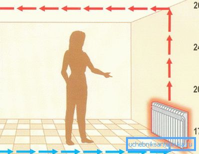 - Конвекційні пристрою. Мають особливу форму теплообмінника, завдяки якій досягається природна конвекція (круговорот) нагрітого і холодного повітря в кімнаті. Таке обладнання має малу інерційність, тому частіше використовується в якості допоміжного.