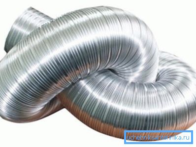 - якщо в деяких місцях повітропровід повинен часто згинатися під великими кутами, то може бути виправдане використання гнучкої труби. Такі повітроводи можуть виконуватися полужесткими (з алюмінієвої фольги, навитої на сталевий каркас) і з ПВХ. Основна перевага, яке дає гнучка вентиляційна труба - можливість плавного повороту (це благотворно впливає на аеродинаміку) і зниження до мінімуму числа фасонних елементів.