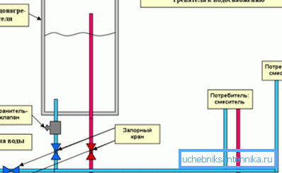 - Тепер розберемося, як підключити бойлер в квартирі до водопроводу, тут є кілька простих правил. На введенні в систему і безпосередньо перед самим водонагрівачем обов'язково встановлюється запірна арматура, найпростіше використовувати кульові крани. Також на вводі холодної води повинен стояти запобіжний клапан, який буде забезпечувати рух води тільки в одному напрямку, для максимальної наочності я представив всю інформацію у вигляді схеми;