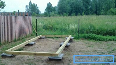 - Далі можна приступати до пристрою фундаменту, він може бути або стовпчастим, або стрічковим, другий варіант кращий з огляду на більшої надійності і довговічності. По периметру копається траншея на глибину 50-60 см шириною 20 см, в неї заливається розчин з цементу і щебеню (всі необхідні пропорції компонентів підкаже інструкція на упаковці). Бажано залити фундамент і в місці проходження перегородки між туалетом і душем, це зробить будова міцніше.