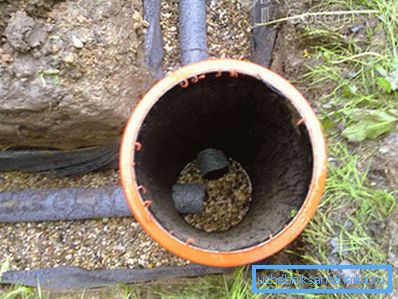 - Труба спускається в котлован і з'єднується з дном. Стики обробляються бітумом.
