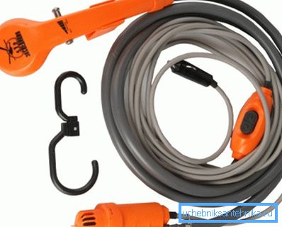 Практично будь-який такий автономний проточний нагрівач можна використовувати для душа, навіть якщо кабінка розташована на вулиці. Тут найголовнішим є джерело живлення, але електричний кабель з будинку підвести досить просто, тільки потрібно дотримуватися техніки безпеки.