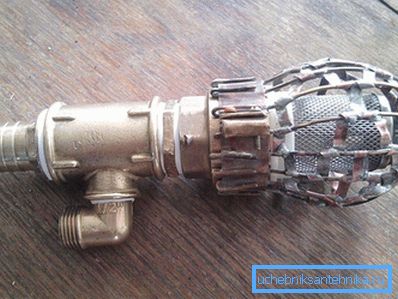 Найпростіший ежектор можна зібрати на основі трійника і штуцера - ці деталі буду виконувати функцію трубки Вентурі в дуже спрощеному варіанті. Фасонні елементи для ежектора можуть застосовуватися з різного матеріалу (метал, пластик). В даному випадку конструкція ежектора зібрана з латунного трійника і цангових фітингів для металопластикових труб.