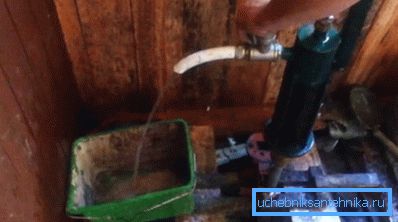 - На верхню трубу надягаємо насос і відкачуємо воду до тих пір, поки вона не стане прозорою. Тепер можна підключати спорудження до системи водопроводу будинку, про те, як це зробити, ви зможете прочитати в наших статтях на цю тему.