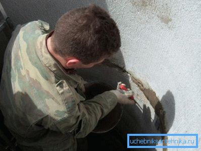 - Після складання всієї колони стики промащують цементним розчином, змішаним з рідким склом.