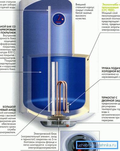 Звичайно, пристрій накопичувальних Водогреев відрізняється в залежності від виробника, але є і ряд загальних моментів: