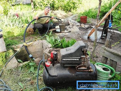- Продувка повітрям під високим тиском за допомогою спеціального обладнання, званого аерліфт. Суть процесу полягає в подачі повітря в замулених частина свердловини під тиском до 10-15 атмосфер. Цього тиску досить для виштовхування води з мулом на поверхню з замуленій частини.
