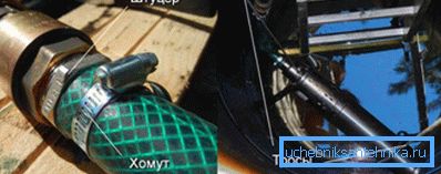 - Насос опускається і піднімається строго за трос. Кабель живлення і напірні труба або шланг підбираються до тросу поліетиленовими хомутами.
